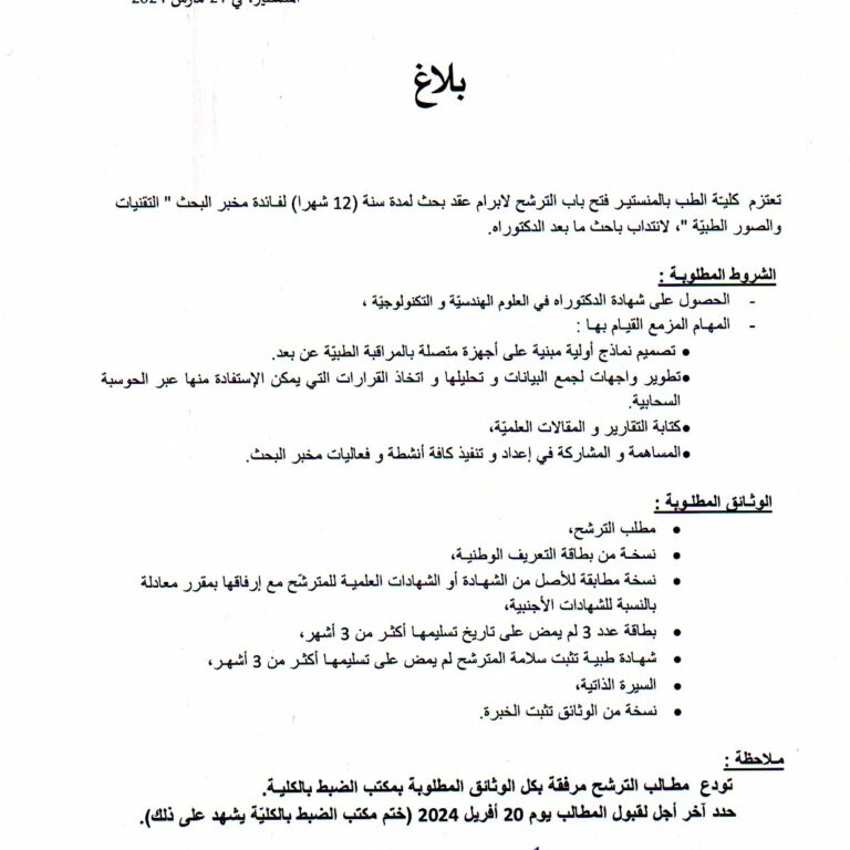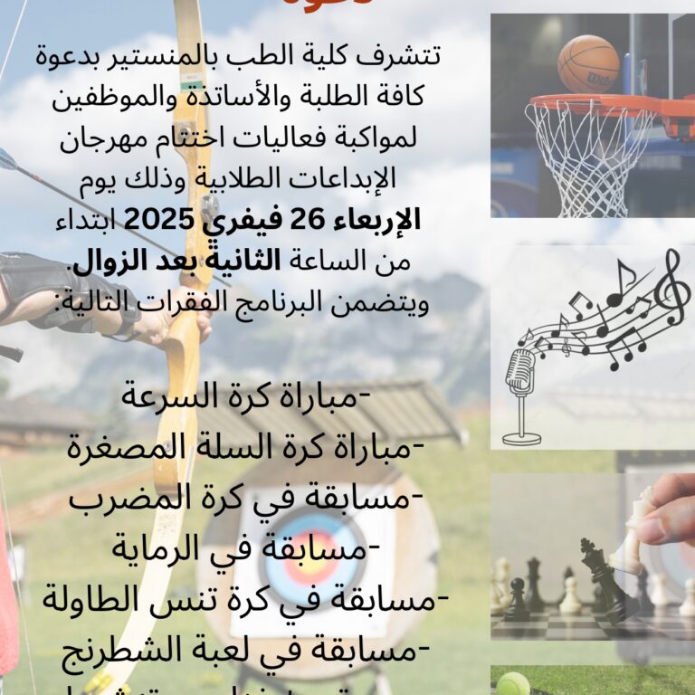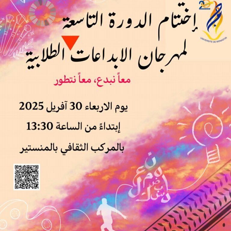 Mar242025 بلاغ المشاركة في الدورة الاولى للمهرجان الوطني الطلابي للفنون التشكيلية بالمهدية Actualité24/03/2025 Read more