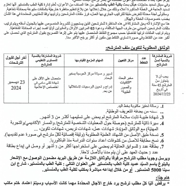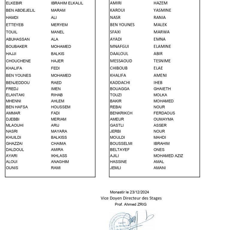 Répartition des salles des examens ECOS pour l’année universitaire 2024/2025 S2 Actualité16/01/2025 Read more