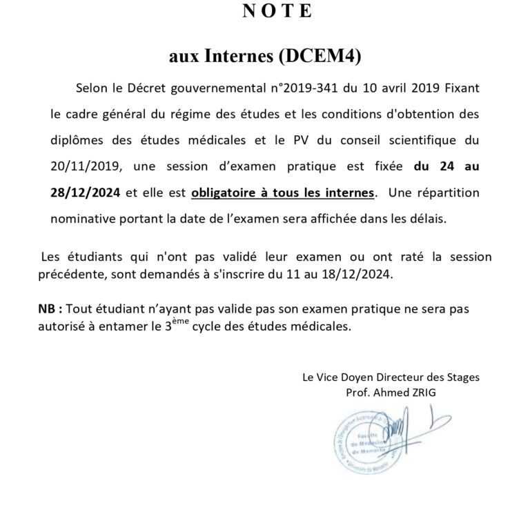May272025 Affectation des groupes : Examen stage de sémiologie PCEM1- PCEM2 Actualité27/05/2025 Read more