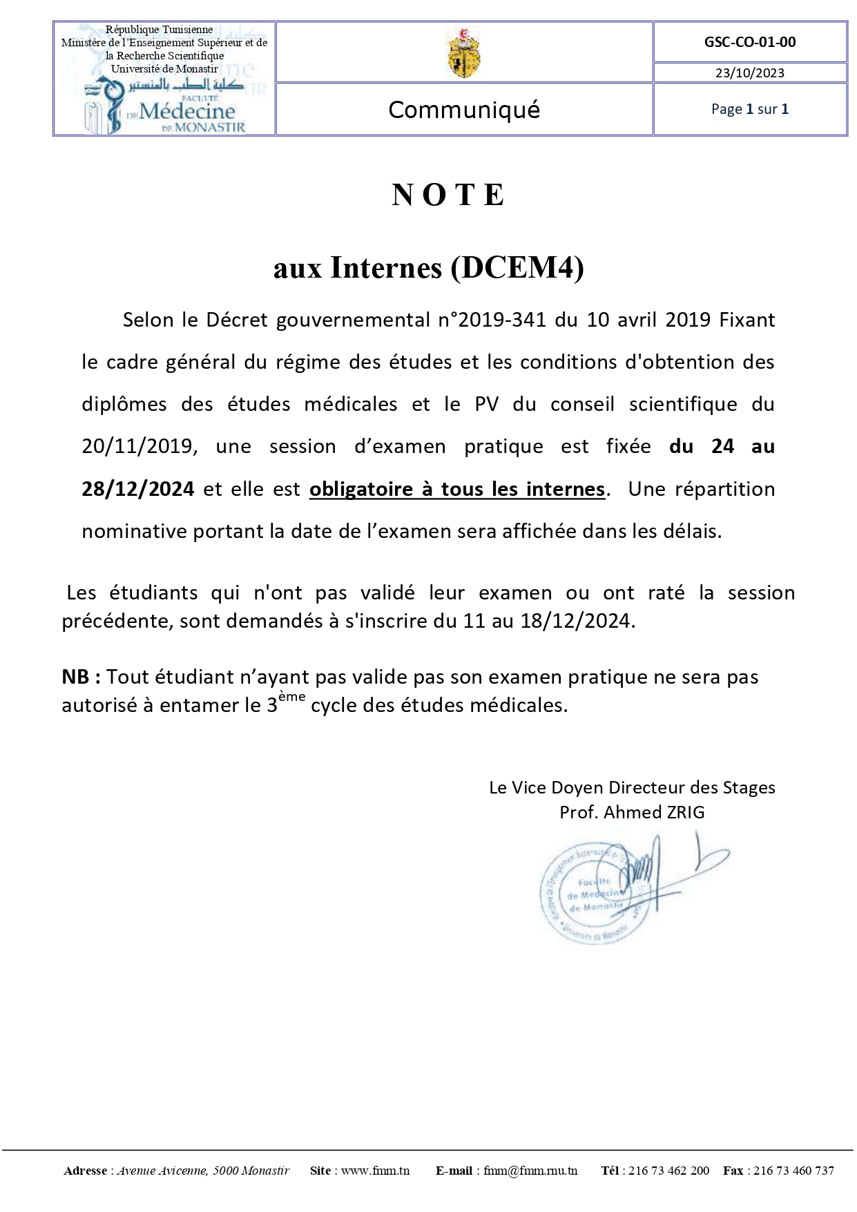 • Mot du Doyen